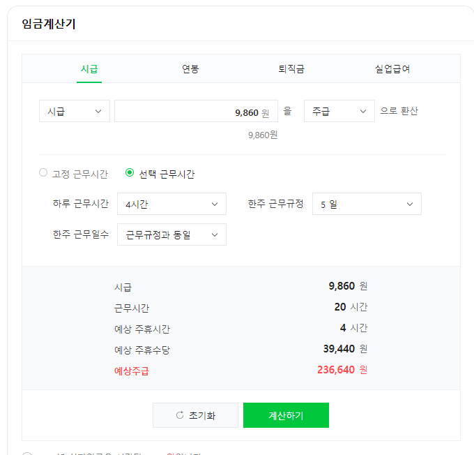시급, 주급, 월급 등 여러 가지로 환산해서 확인 가능하니 참고부탁드립니다.
