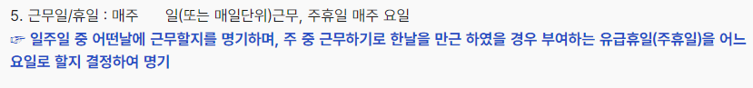 ※ 근로계약서 작성 시 주휴일이 언제인지 꼭 확인!!