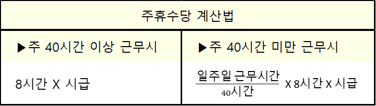 ▶ 주 40시간 미만 근무시 주휴수당