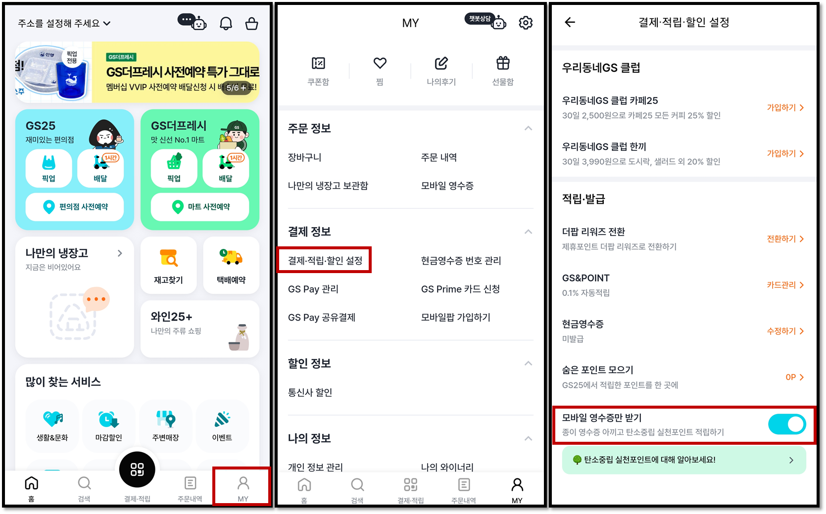 ▶ 우리동네GS앱 실행 → 우측 하단 [MY] 선택
