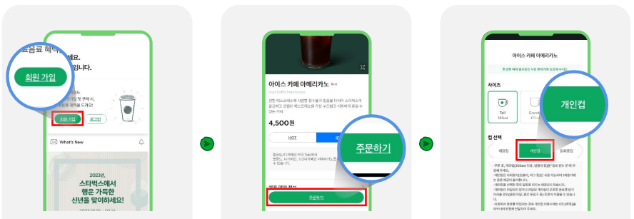 스타벅스 앱 실행 → 로그인 및 스타벅스 카드등록