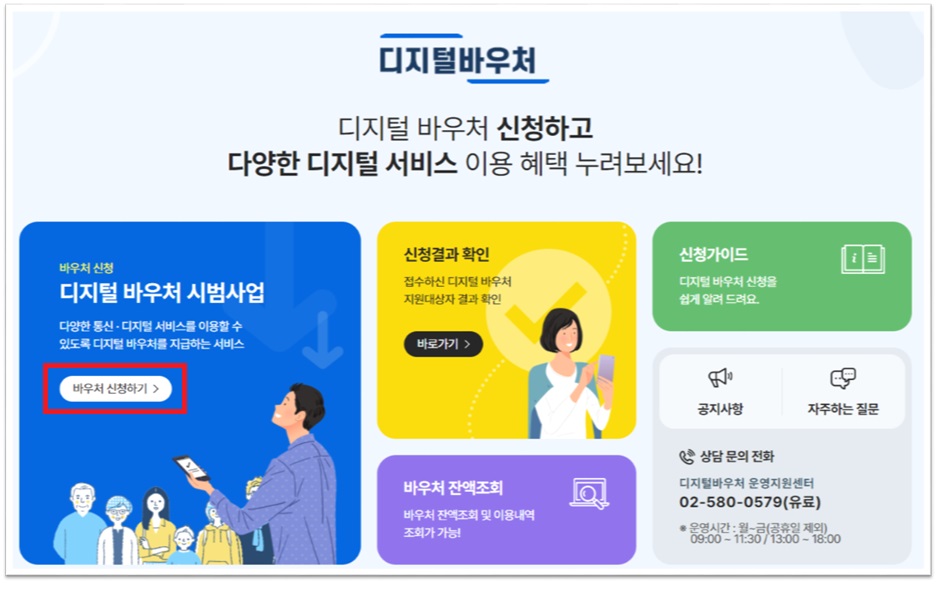1. 디지털 바이처 사이트 https://www.digital-v.kr/ 메인화면 [바우처 신청하기] 선택