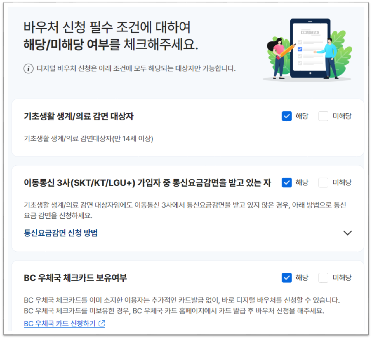 신청 시점에 아래 3가지 조건 충족해야 합니다