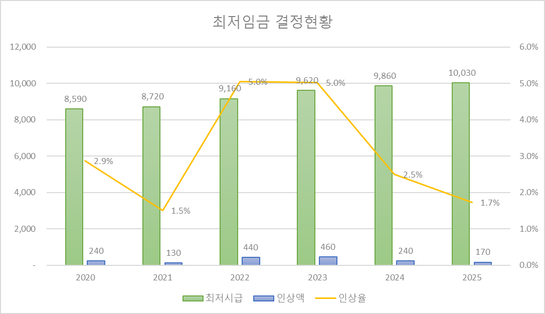 2025년 최저임금이 시간당 10,030원으로 결정되었습니다.