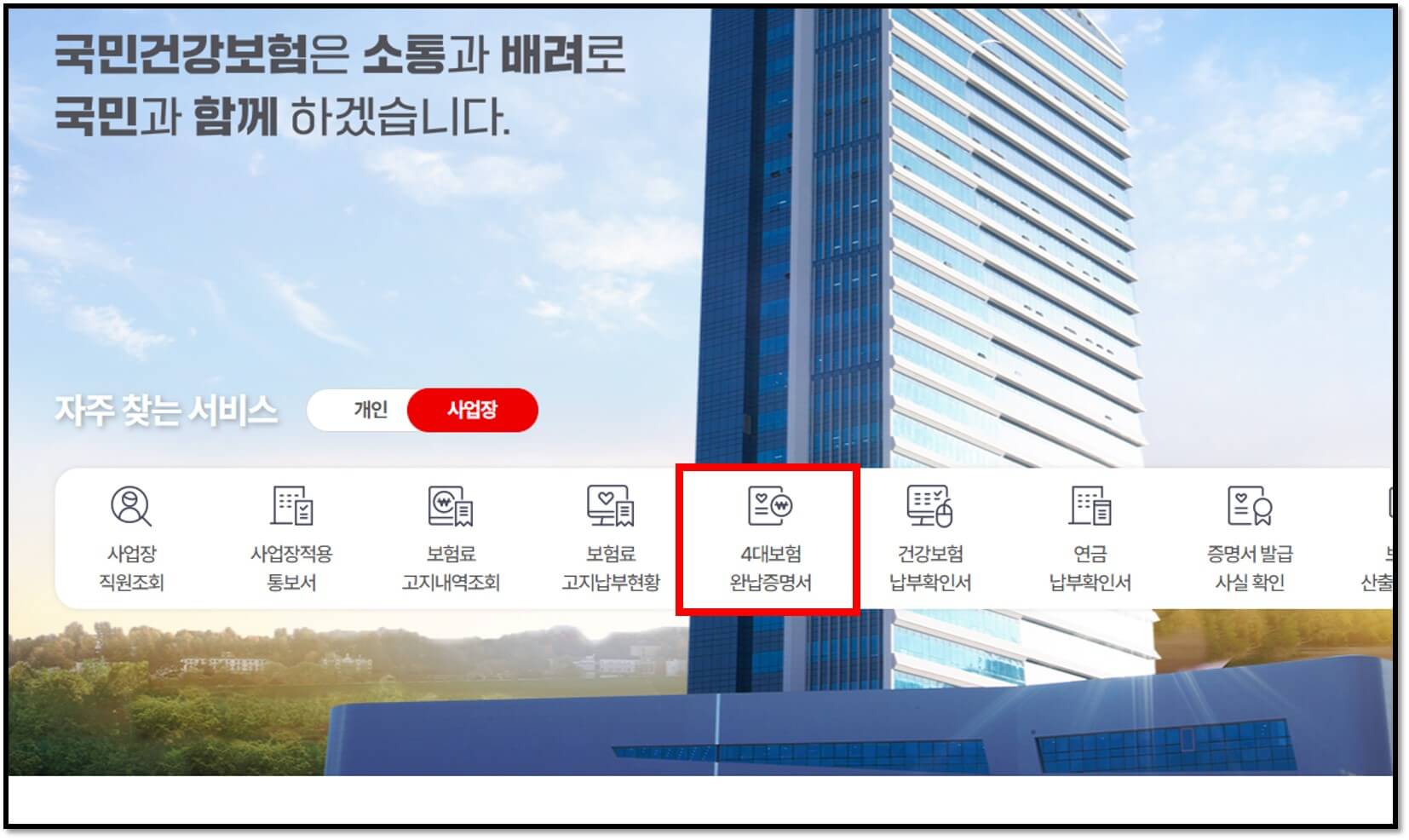 ▶ 건강보험공단 대표 홈페이지 바로가기